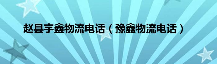 以上就是【赵县宇鑫物流电话,豫鑫物流电话】相关内容。