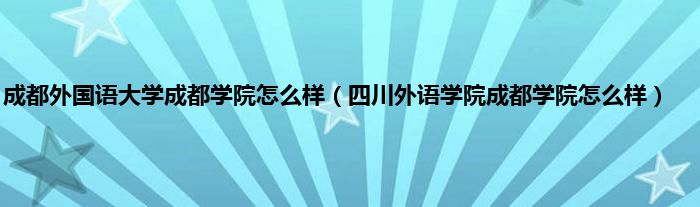 以上就是【成都外国语大学成都学院怎么样,四川外语学院成都学院怎么样】相关内容。