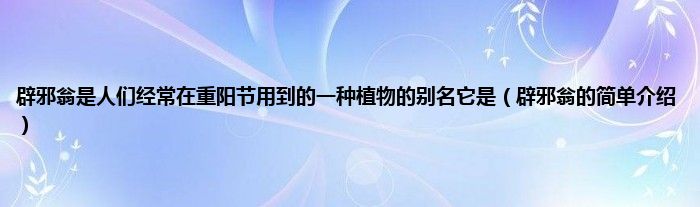 本文,辟邪翁是人们经常在重阳节用到的一种植物的别名它是,辟邪翁的简单介绍到此就分享完毕,希望对大家有所帮助。