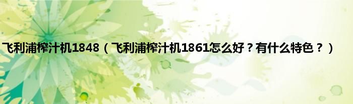 本文,飞利浦榨汁机1848,飞利浦榨汁机1861怎么好?有什么特色?到此就分享完毕,希望对大家有所帮助。