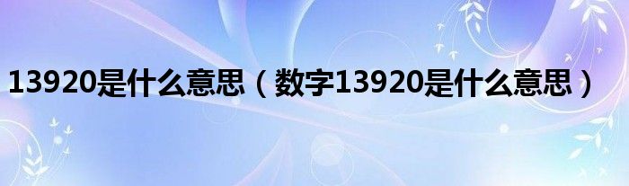大家好,13920是什么意思,数字13920是什么意思很多人还不知道,现在让我们一起来看看吧!