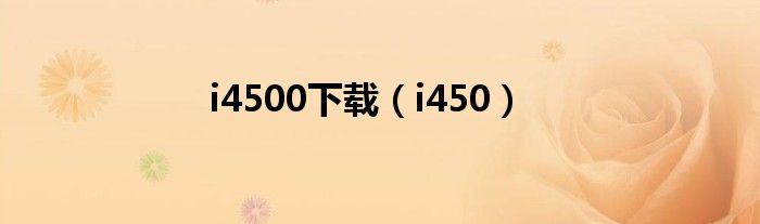 大家好,小问来为大家解答以上问题。i4500下载,i450这个很多人还不知道,现在让我们一起来看看吧!