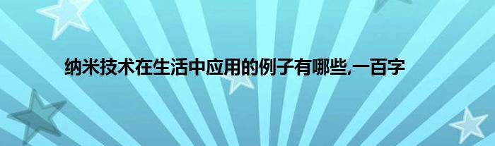 本文,纳米技术在生活中应用的例子有哪些,一百字到此就分享完毕,希望对大家有所帮助。