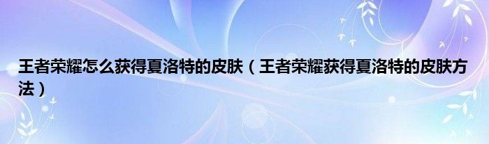 大家好,王者荣耀怎么获得夏洛特的皮肤,王者荣耀获得夏洛特的皮肤方法很多人还不知道,现在让我们一起来看看吧!