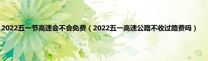 1、 2022五一高速会免费吗?