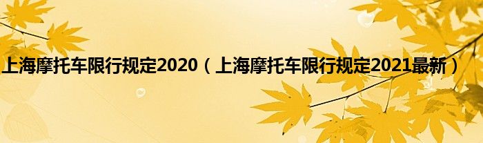 本文,上海摩托车限行规定2020,上海摩托车限行规定2021最新到此就分享完毕,希望对大家有所帮助。