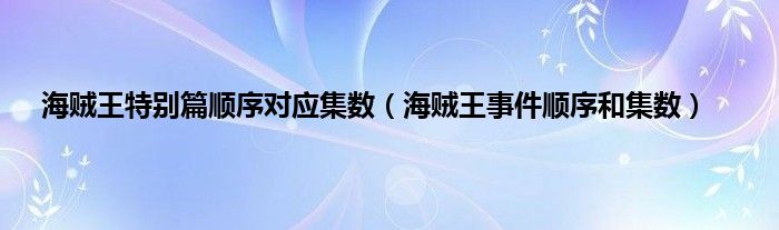 本文,海贼王特别篇顺序对应集数,海贼王事件顺序和集数到此就分享完毕,希望对大家有所帮助。