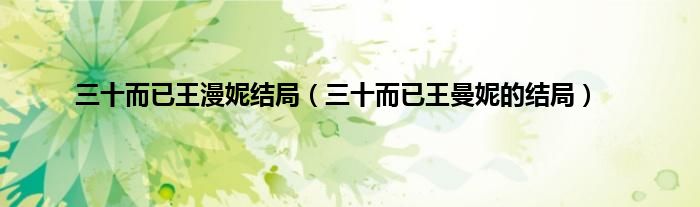 本文,三十而已王漫妮结局,三十而已王曼妮的结局到此就分享完毕,希望对大家有所帮助。