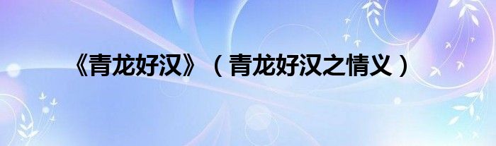 以上就是【《青龙好汉》,青龙好汉之情义】相关内容。