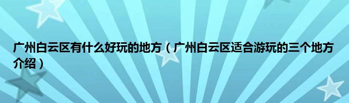 本文,广州白云区有什么好玩的地方,广州白云区适合游玩的三个地方介绍到此就分享完毕,希望对大家有所帮助。