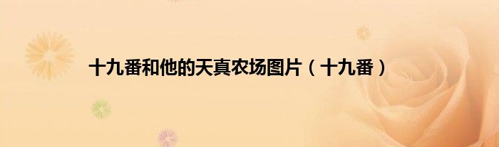 大家好,小问来为大家解答以上问题。十九番和他的天真农场图片,十九番这个很多人还不知道,现在让我们一起来看看吧!