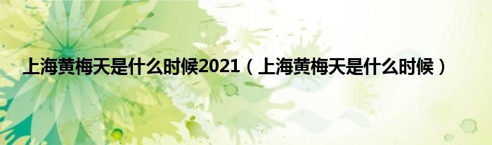 大家好,上海黄梅天是什么时候2021,上海黄梅天是什么时候很多人还不知道,现在让我们一起来看看吧!