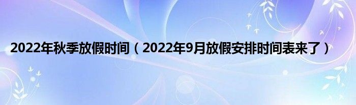 本文,2022年秋季放假时间,2022年9月放假安排时间表来了到此就分享完毕,希望对大家有所帮助。