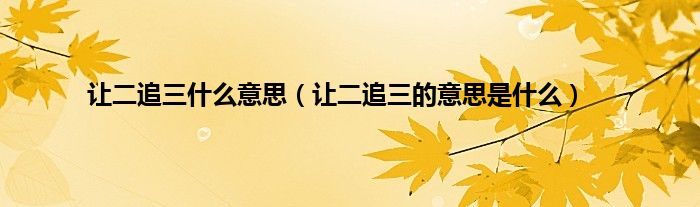 大家好,让二追三什么意思,让二追三的意思是什么很多人还不知道,现在让我们一起来看看吧!