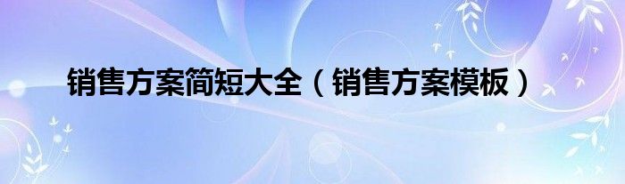 以上就是【销售方案简短大全,销售方案模板】相关内容。