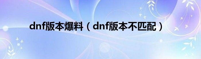 dnf版本爆料(dnf版本不匹配)