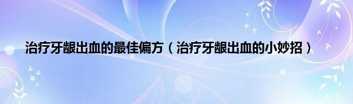 以上就是【治疗牙龈出血的最佳偏方,治疗牙龈出血的小妙招】相关内容。