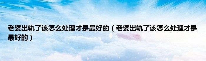 以上就是【老婆出轨了该怎么处理才是最好的,老婆出轨了该怎么处理才是最好的】相关内容。