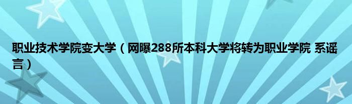 大家好,小问来为大家解答以上问题。职业技术学院变大学,网曝288所本科大学将转为职业学院 系谣言这个很多人还不知道,现在让我们一起来看看吧!