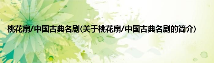 本文关于桃花扇/中国古典名剧的简介就讲解完毕,希望对大家有所帮助。