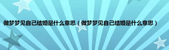 大家好,综合小编来为大家讲解下。做梦梦见自己结婚是什么意思,做梦梦见自己结婚是什么意思这个很多人还不知道,现在让我们一起来看看吧!