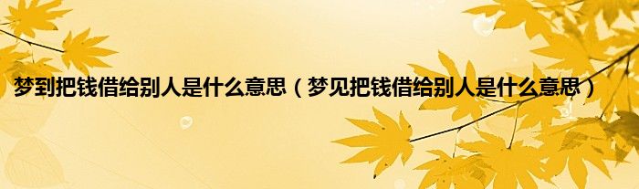 大家好,综合小编来为大家讲解下。梦到把钱借给别人是什么意思,梦见把钱借给别人是什么意思这个很多人还不知道,现在让我们一起来看看吧!
