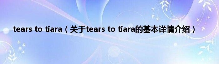 本文关于tears to tiara的基本详情介绍就讲解完毕,希望对大家有所帮助。