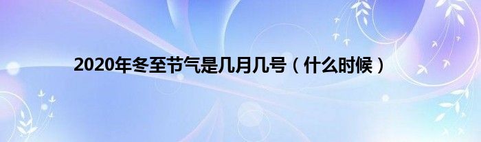 大家好,综合小编来为大家讲解下。2020年冬至节气是几月几号,什么时候这个很多人还不知道,现在让我们一起来看看吧!