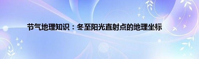 大家好,综合小编来为大家讲解下。节气地理知识:冬至阳光直射点的地理坐标这个很多人还不知道,现在让我们一起来看看吧!