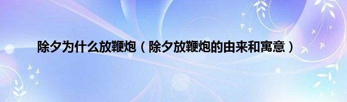 大家好,综合小编来为大家讲解下。除夕为什么放鞭炮,除夕放鞭炮的由来和寓意这个很多人还不知道,现在让我们一起来看看吧!