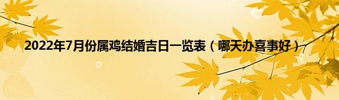 大家好,综合小编来为大家讲解下。2022年7月份属鸡结婚吉日一览表,哪天办喜事好这个很多人还不知道,现在让我们一起来看看吧!