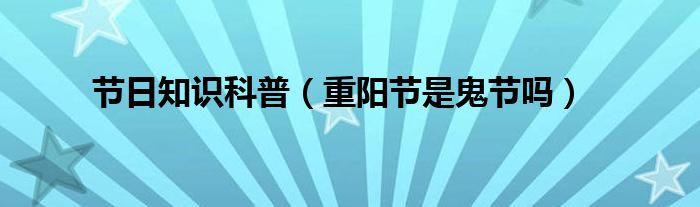 一、问:重阳节是鬼节吗?: 答:重阳节不是鬼节,重阳节这一天虽燃有着祭祀习俗,但并不是鬼节,鬼节有中西之分,在中国鬼节分别是七月十五中元节,清明节,三月三,十月初一。西方鬼节中有墨西哥鬼节等。