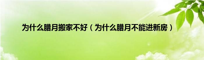 本文为什么腊月搬家不好,为什么腊月不能进新房到此分享完毕,希望对大家有所帮助。