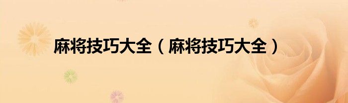 本文,麻将技巧大全,麻将技巧大全到此就分享完毕,希望对大家有所帮助。