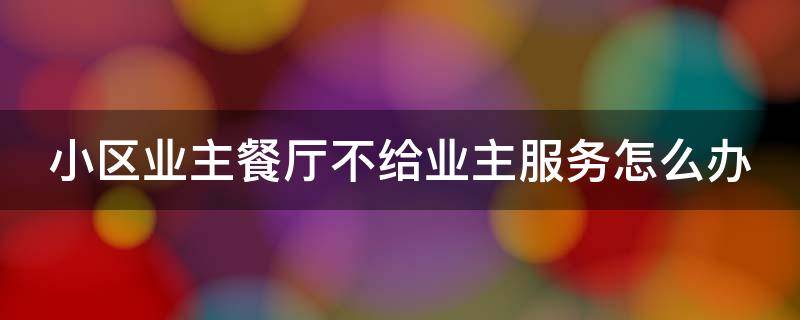 小区业主餐厅不给业主服务可以找当地房地产行政部门或房管局投诉。当地房地产行政管理部门或房管局应当在接受到投诉后,积极协商和处理,尽可能解决投诉的相关问题,为业主提供良好的生活环境。《物业管理条例》第四十七条,物业使用人在物业管理活动中的权利义务由业主和物业使用人约定,但不得违反法律、法规和管理规约的有关规定。物业使用人违反本条例和管理规约的规定,有关业主应当承担连带责任。第四十八条,县级以上地方人民政府房地产行政主管部门应当及时处理业主、业主委员会、物业使用人和物业服务企业在物业管理活动中的投诉。