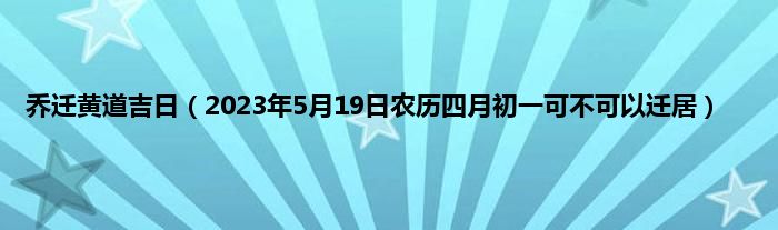 大家好,综合小编来为大家讲解下。乔迁黄道吉日,2023年5月19日农历四月初一可不可以迁居这个很多人还不知道,现在让我们一起来看看吧!