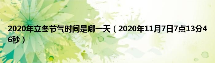 大家好,综合小编来为大家讲解下。2020年立冬节气时间是哪一天,2020年11月7日7点13分46秒这个很多人还不知道,现在让我们一起来看看吧!