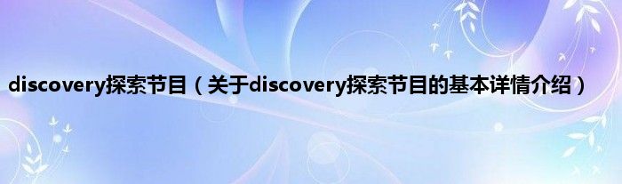 本文关于discovery探索节目的基本详情介绍就讲解完毕,希望对大家有所帮助。