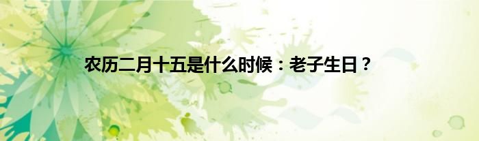 一、问:农历二月十五是什么日子?: 答:农历二月十五是老子诞辰。2017年的老子诞辰在2017年3月12日,星期日。
