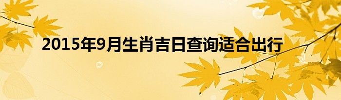 大家好,综合小编来为大家讲解下。2015年9月生肖吉日查询适合出行这个很多人还不知道,现在让我们一起来看看吧!