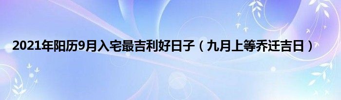 大家好,综合小编来为大家讲解下。2021年阳历9月入宅最吉利好日子,九月上等乔迁吉日这个很多人还不知道,现在让我们一起来看看吧!