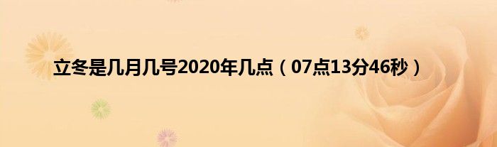 大家好,综合小编来为大家讲解下。立冬是几月几号2020年几点,07点13分46秒这个很多人还不知道,现在让我们一起来看看吧!