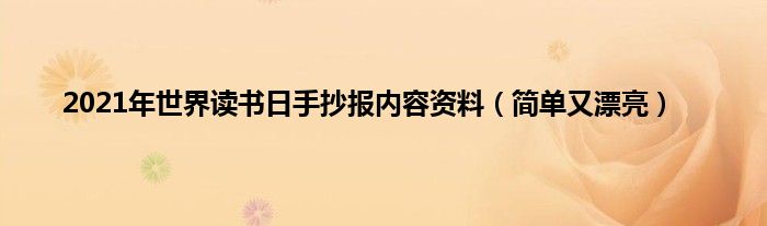 大家好,综合小编来为大家讲解下。2021年世界读书日手抄报内容资料,简单又漂亮这个很多人还不知道,现在让我们一起来看看吧!
