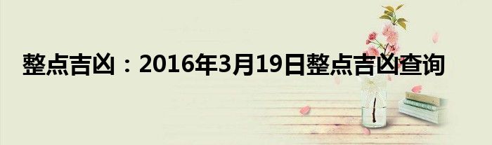 大家好,综合小编来为大家讲解下。整点吉凶:2016年3月19日整点吉凶查询这个很多人还不知道,现在让我们一起来看看吧!