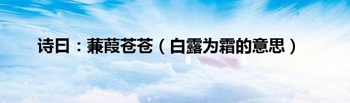 大家好,综合小编来为大家讲解下。诗曰:蒹葭苍苍,白露为霜的意思这个很多人还不知道,现在让我们一起来看看吧!