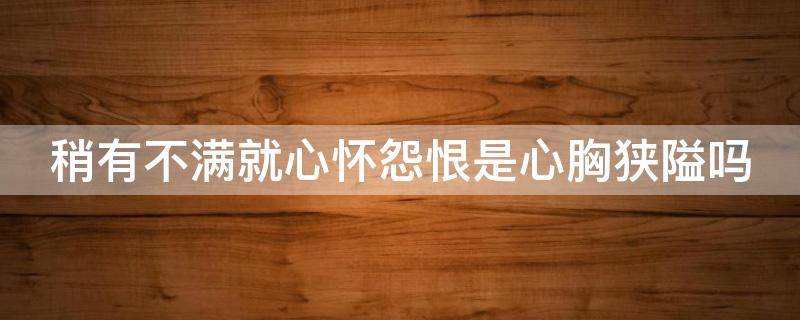 稍有不满就心怀怨恨是心胸狭隘。心胸狭隘的意思是气量非常小,出自《水浒传》第20回:今日为众豪杰至此相聚,争奈王伦心胸狭隘,嫉贤妒能,推故不纳,因此火并了这厮,非林冲要图此位。心胸狭隘的人做很多事情、说很多话,都是为了保全利益和争夺利益。听不到半点反对的声音,反而喜欢听虚伪的话,不能正视自己。稍有不顺便会大发雷霆,情绪上的冲动导致行为的莽撞。心胸狭隘之人往往只看到别人对他不好的地方,而看不到别人对他的付出,没有宽大容忍的心,不能容忍受丝毫的委屈和吃亏。