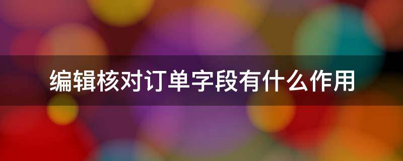 编辑核对订单字段有什么作用