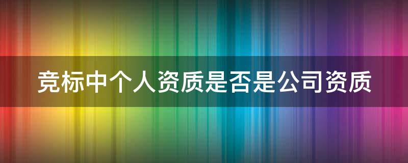 竞标中个人资质不是公司资质。企业资质就是公司符合相关行业规定的,证明自身生产等能力的相关文件、证件。个人资质是指能区分在特定的工作岗位和组织环境中工作绩效的个人特质。企业资质分为经营资质和能力资质,经营资质主要为企业法人营业执照、税务登记证、组织机构代码证、生产许可证等。能力资质主要为企业获得的由国家、地方、专业机构、行业协会颁发的相应资质证书,如一级软件集成商资质、消防设施工程专业承包企业资质等。