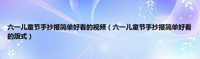 本文六一儿童节手抄报简单好看的视频,六一儿童节手抄报简单好看的版式到此分享完毕,希望对大家有所帮助。