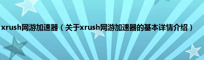 本文关于xrush网游加速器的基本详情介绍就讲解完毕,希望对大家有所帮助。